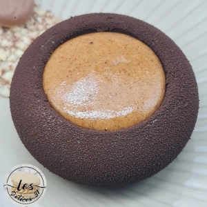 Finish by pouring the remaining hazelnut mousse on top. Be careful to leave 2 mm of space at the top for the mirror glaze. Place in the freezer overnight.