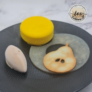 Mélanger l’ensemble des ingrédients. Garnir le moule silicone poire. Lisser avec une spatule coudée pour retirer l’excédent.