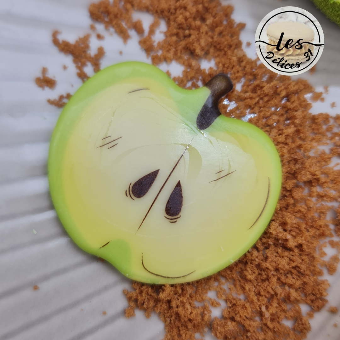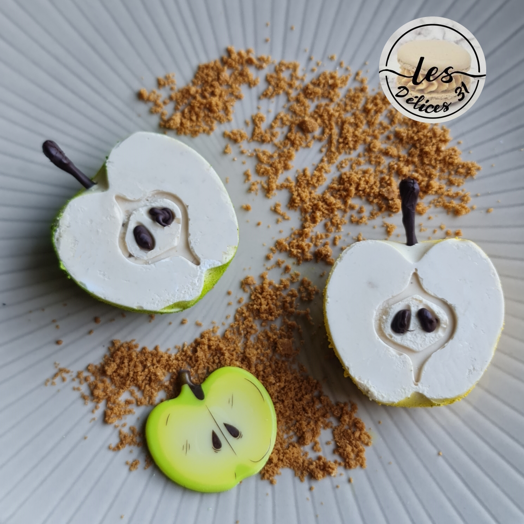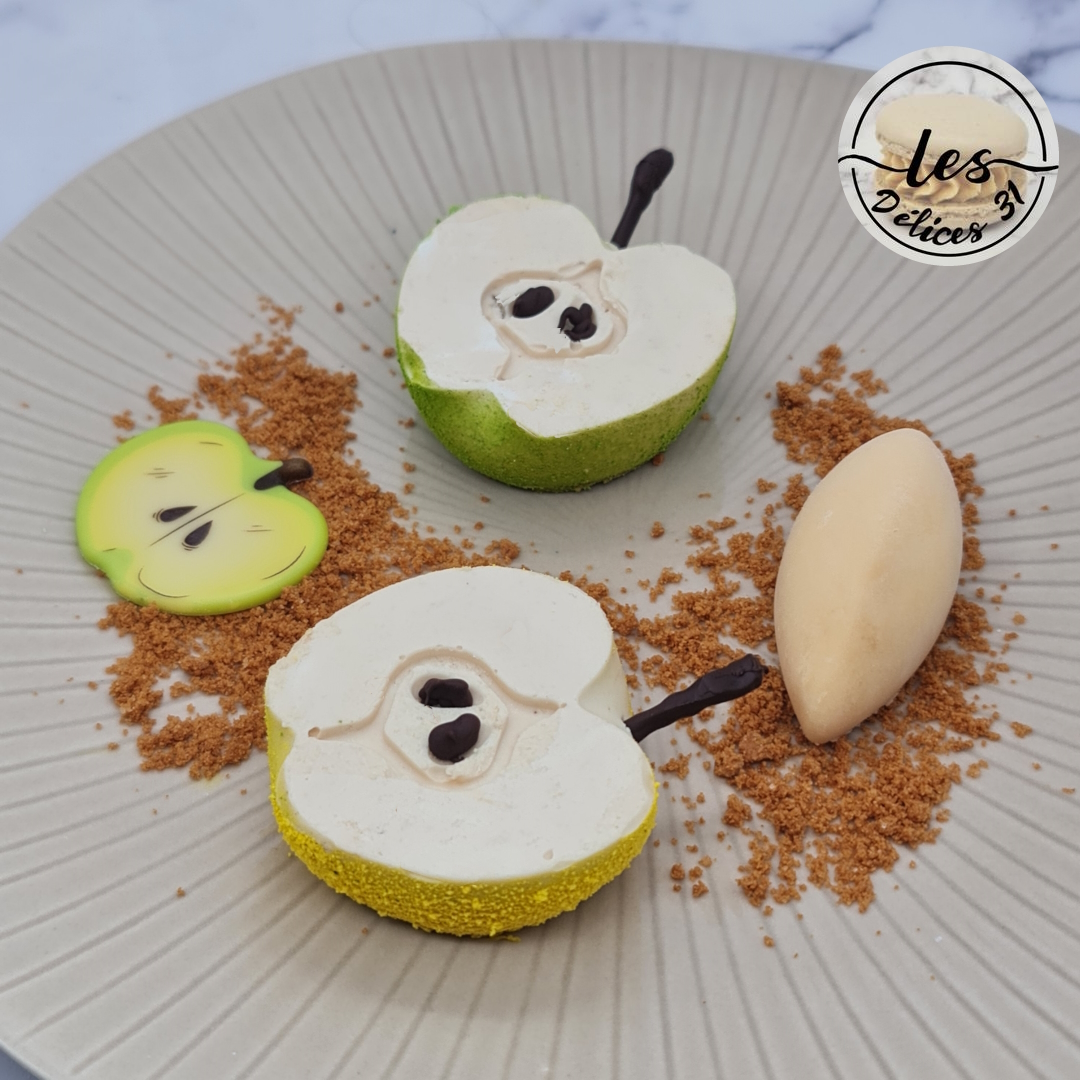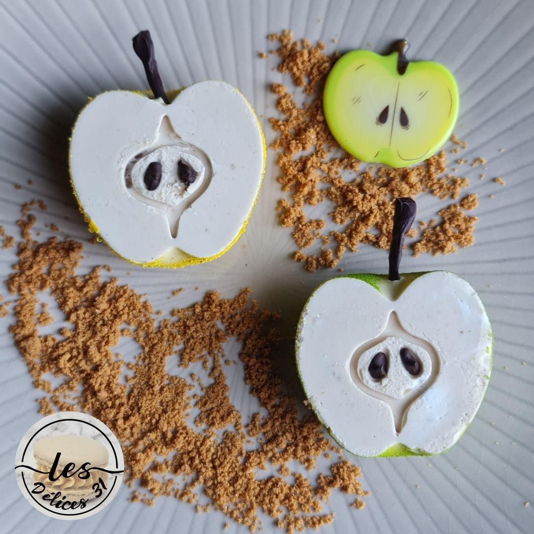Remplir le moule Pavoni pomme de mousse spéculoos à mi-hauteur en remontant bien sur les bords. Ajouter la compotée de pomme.