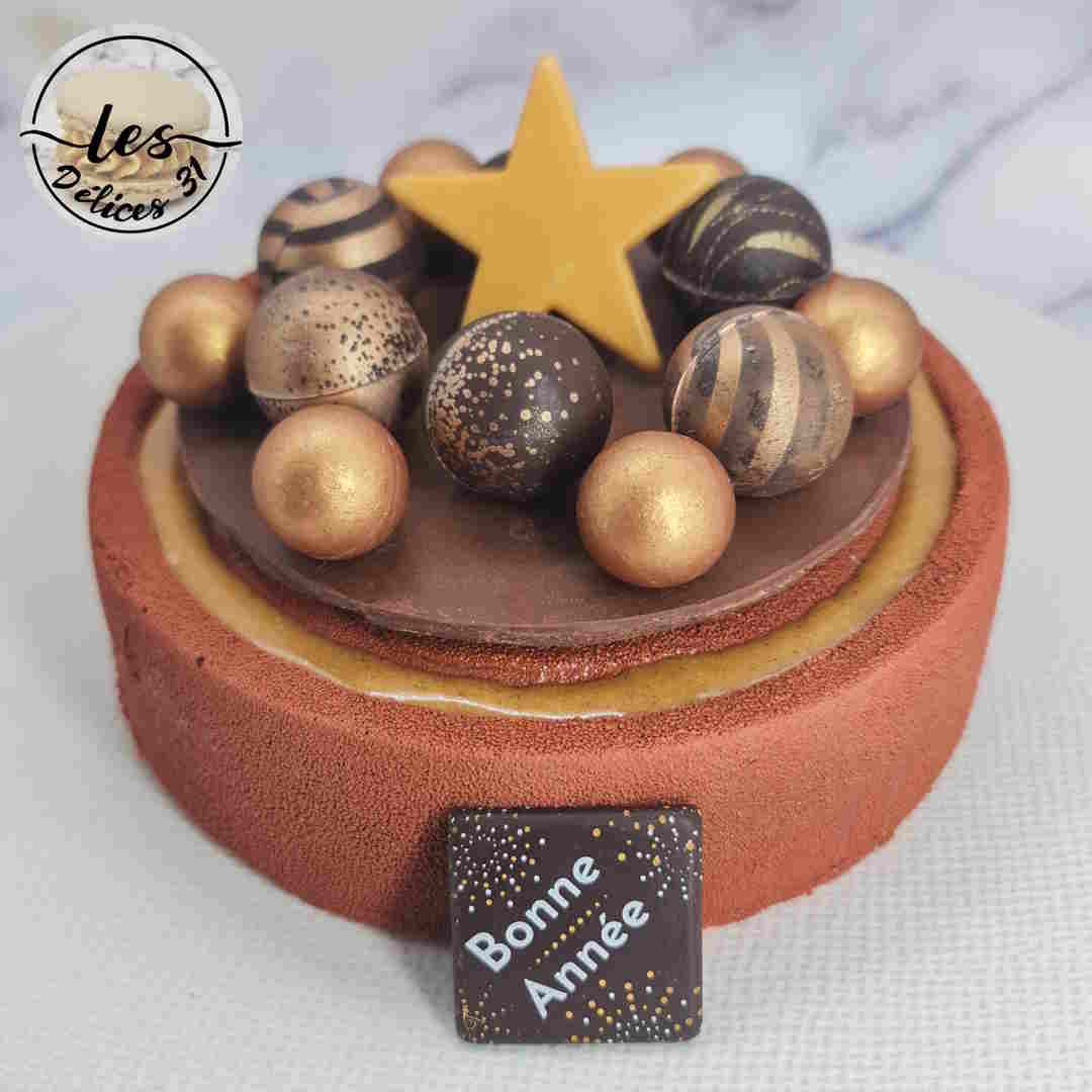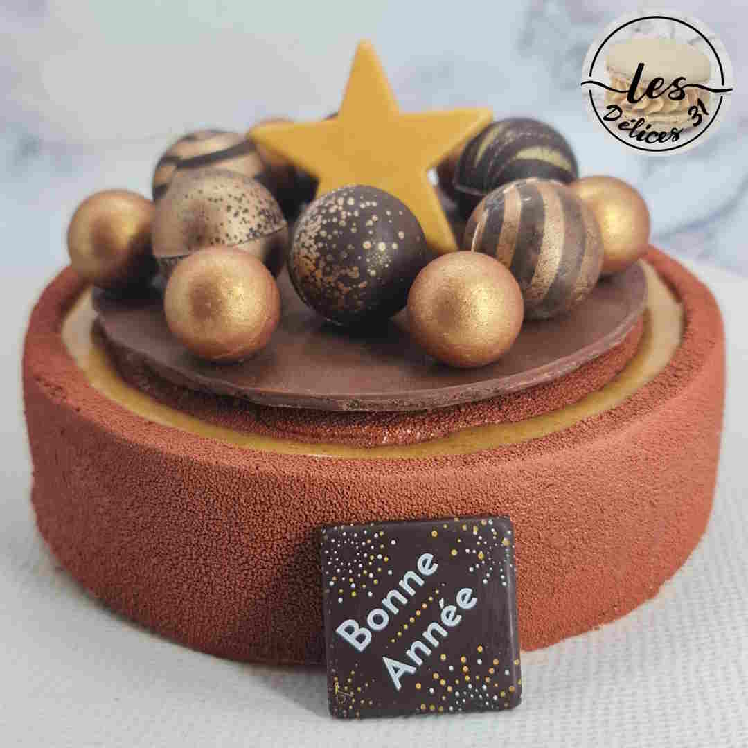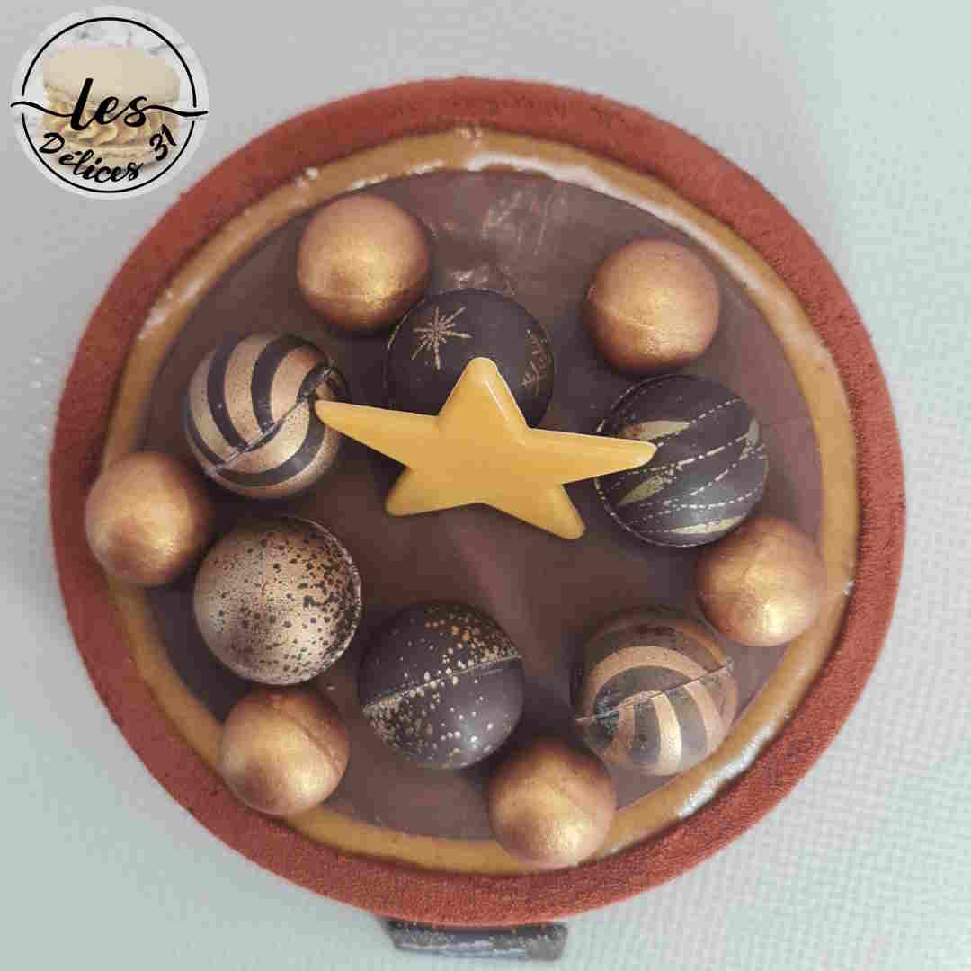 Le lendemain sortir et démouler les entremets congelés et appliquer aussitôt le spray velours brun. Placer au frais au moins 3 à 4 heures, le temps de la décongélation, avant de pouvoir déguster.