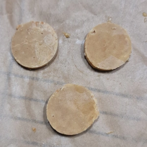 Biscuit amandes ✔30g de poudre d’amandes ✔30g de sucre en poudre ✔8g de farine ✔1 blanc d’œuf ✔1 jaune d’oeuf ✔10g de beurre fondu